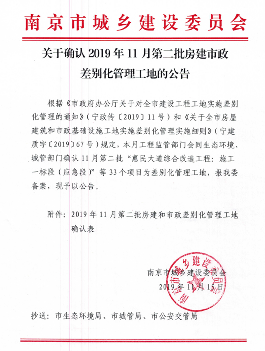 南京分公司將以此次獲批差別化管理工地為契機,按照集團精細化管理的要求,持續推進在建項目智慧工地建設、綠色施工和標準化施工,將差別化工地管理的一系列舉措融入平時的管理中,更進一步做好精細化管理。