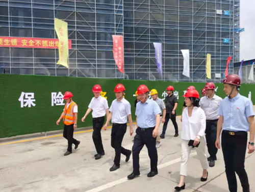 6月28日上午,南京市委常委、江北新區黨工委專職副書記羅群視察集團承建的國際化名醫中心項目,并督導安全生產工作。新區中央商務區主任陳建鵬、新區建設與交通局長許蕾等部門負責人隨同檢查,集團董事長管民良、副總經理張幫華等在項目現場陪同。