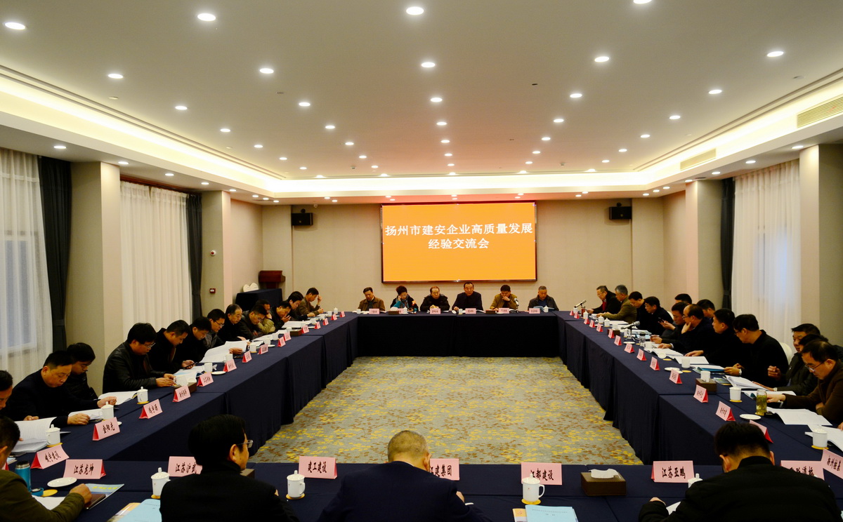 近日,揚州市建安企業高質量發展經驗交流會在揚州舉行,總結2018年揚州建安企業在高質量發展中取得的成績。各縣市區重點企業的主要負責人、協會會長、秘書長50余人參加了會議。揚州市建筑行業協會任壽松會長主持會議,集團董事長管民良在會上交流講話。