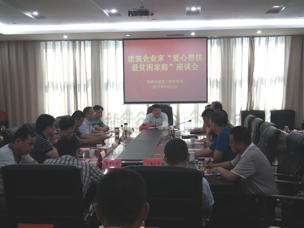 21日下午,市建管局十七樓會議室內(nèi)愛心涌動,建管局徐曉君局長主持召開建筑行業(yè)企業(yè)家"愛心幫扶最貧困家庭"座談會,卞紅蓮書記、王斌、緒軍、張青等副局長出席,集團黃益寶副總參加本次活動。