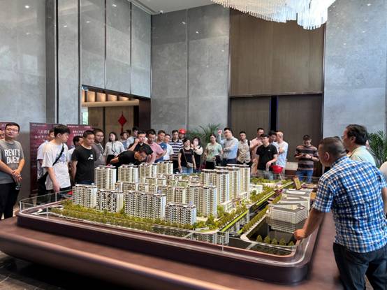 隨后,觀(guān)摩團(tuán)一行參觀(guān)了天賦星辰項(xiàng)目售樓中心,在華麗大氣的銷(xiāo)售中心大廳沙盤(pán)區(qū)域,聽(tīng)取了天賦星辰項(xiàng)目設(shè)計(jì)理念、區(qū)位優(yōu)勢(shì)、推進(jìn)速度、政策優(yōu)惠等相關(guān)介紹。