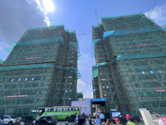 觀(guān)摩團(tuán)第一站:天賦星辰項(xiàng)目,該項(xiàng)目建筑面積為107121.54 ㎡,其中地上12 棟單體住宅樓建筑面積為74340.92 ㎡,地下為一層車(chē)庫(kù)及人防,建筑面積為32780.62 平米。目前已經(jīng)有8 棟全部封頂, 3棟樓二次結(jié)構(gòu)快要完成,3棟屋面做法及外墻抹灰完成,2棟屋面做法正在施工。