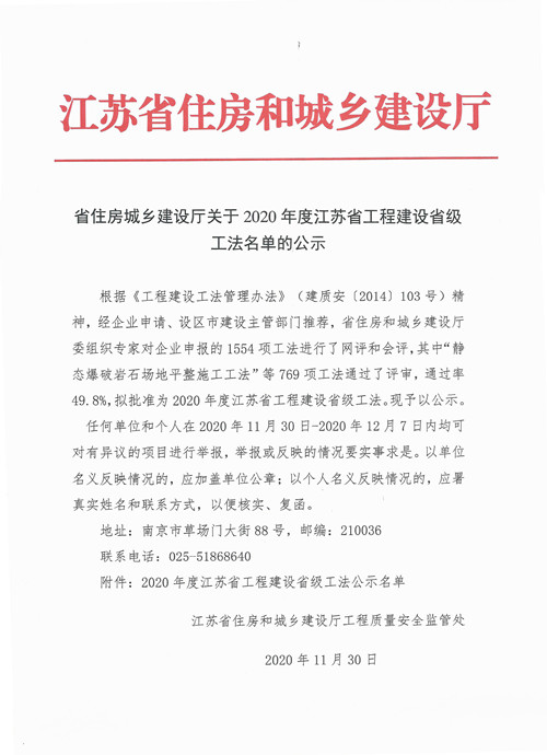 工法是企業標準的重要組成部分,是衡量企業技術水平和施工能力的重要標志,省級工法則是代表了江蘇省施工工藝標準的最高水平。獲此榮譽,不僅是集團科技研發水平的體現,更是先進施工方法的積累,提高了公司的行業影響力,對工程的施工和質量管理也起到了促進作用。