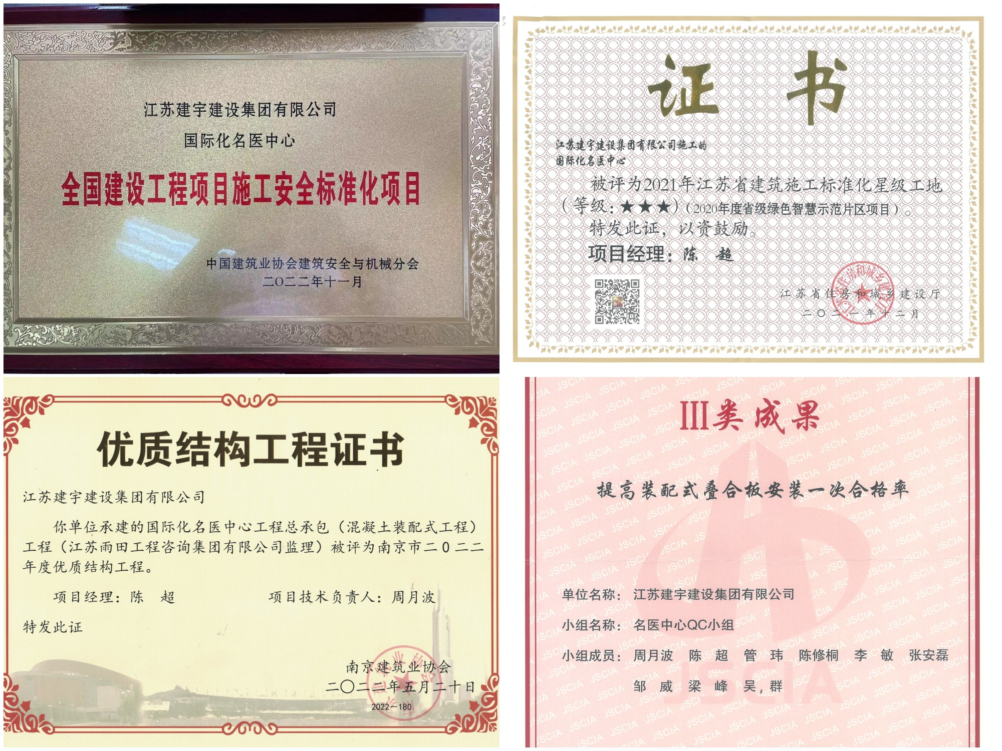 在項目施工期間,成功舉辦了江北新區安全生產月啟動儀式暨現場觀摩會和江蘇省建筑業協會裝配式建筑 + 智慧工地示范項目現場觀摩會,成為行業內的標桿典范。先后榮獲南京市裝配式示范工程、綠色智慧示范片區工程、江蘇省建筑產業現代化示范項目(第一批)、江蘇省建設工程BIM應用大賽三類成果、江蘇省建筑施工標準化文明示范三星工地、全國建設工程項目施工工地安全生產標準化學習交流項目(國家AAA工地)等。