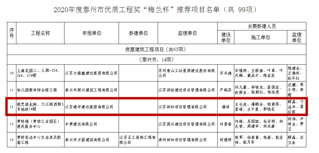 近日,集團(tuán)項目創(chuàng)優(yōu)奪牌再獲佳績:泰州分公司承建的“根思路北側(cè)、文江路西側(cè)3號地塊”項目獲得2020年度泰州市優(yōu)質(zhì)工程獎“梅蘭杯”,南京分公司承建的高淳保障房項目順利通過市優(yōu)質(zhì)結(jié)構(gòu)工程驗收。
